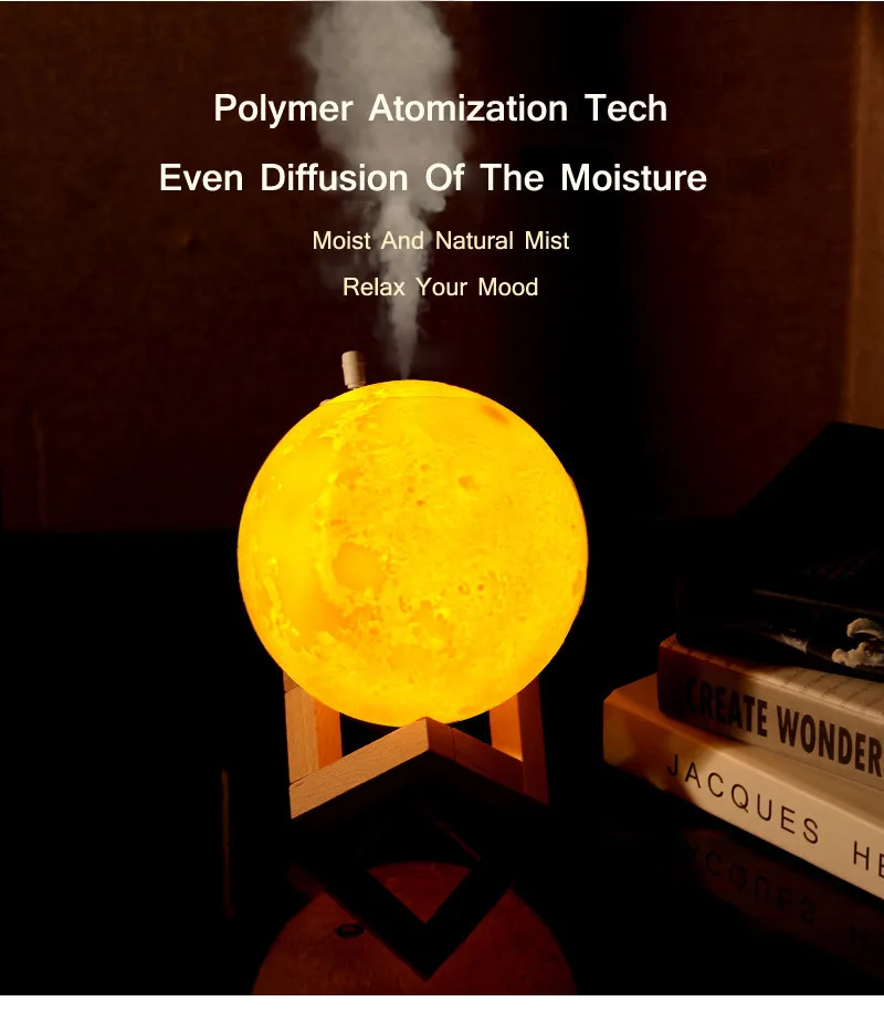 Moon lunar shape humidifier, the surface of the moon lamp is very close to the lunar moon, novelty and charming.